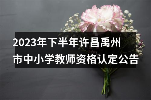 按照许昌市教育局工作安排,结合我市实际情况,现就2023年下半年禹州市中小学(含幼儿园)教师资格认定工作有关事项公告如下: